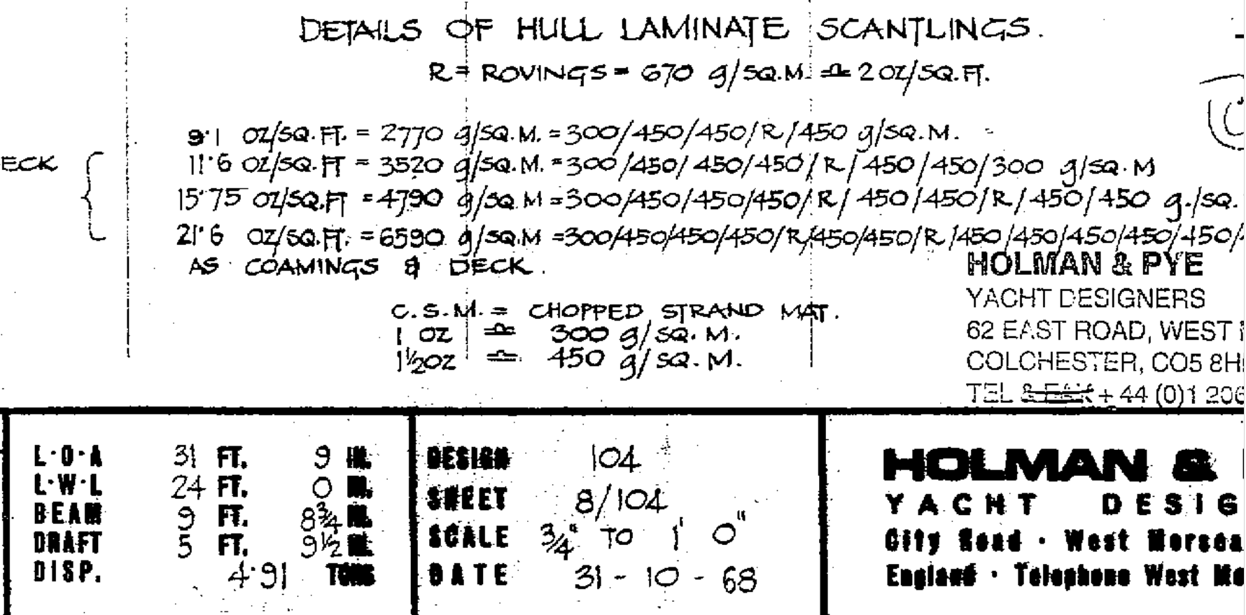 Grace à David, j'ai des plans détaillés. L'intérêt est d'avoir un maximum d'information sur les couches de résine de la coque, depuis la quille jusqu'au pont, en particulier le galbord.