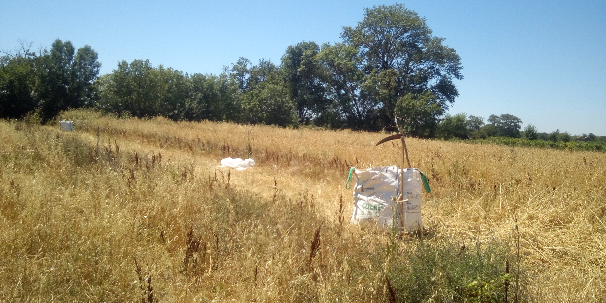 Grâce au prêt de 100 kg de graines de blé de la part d'Édith (grand merci), nous devrons avoir notre première récolte de blé cette année.