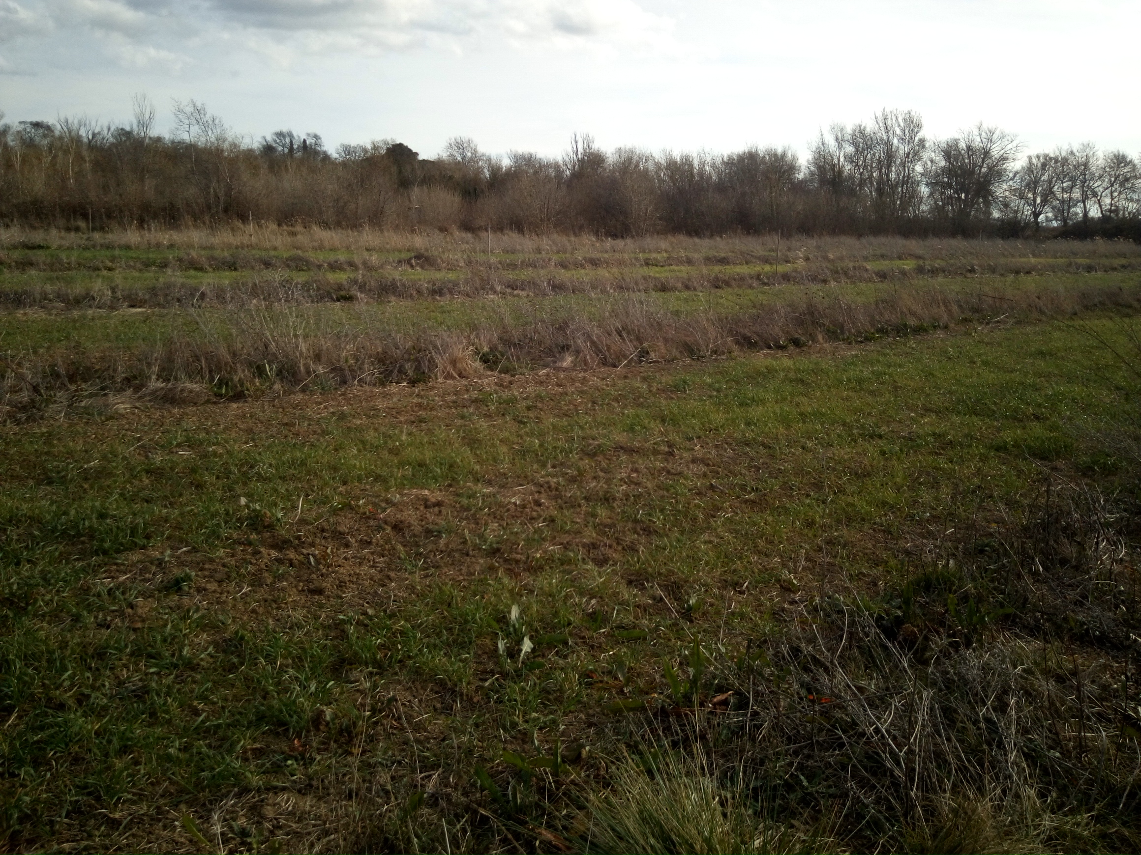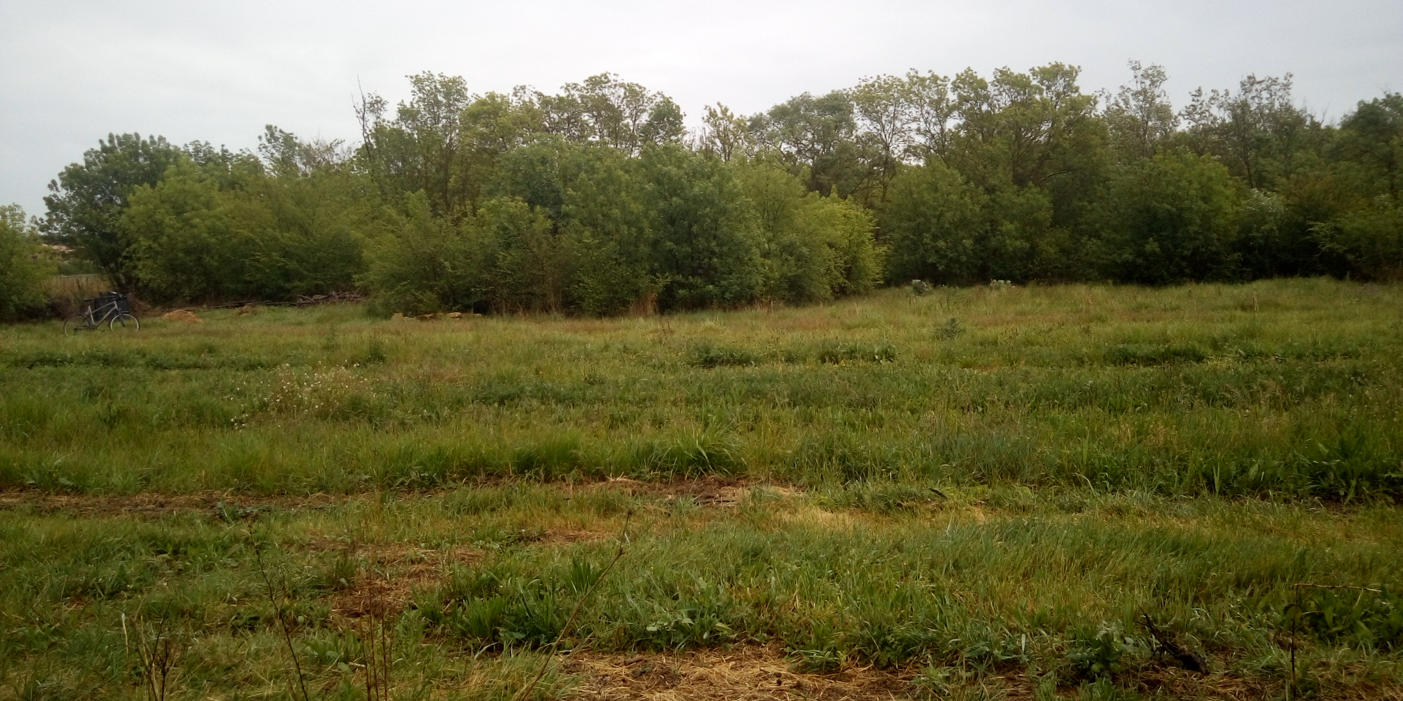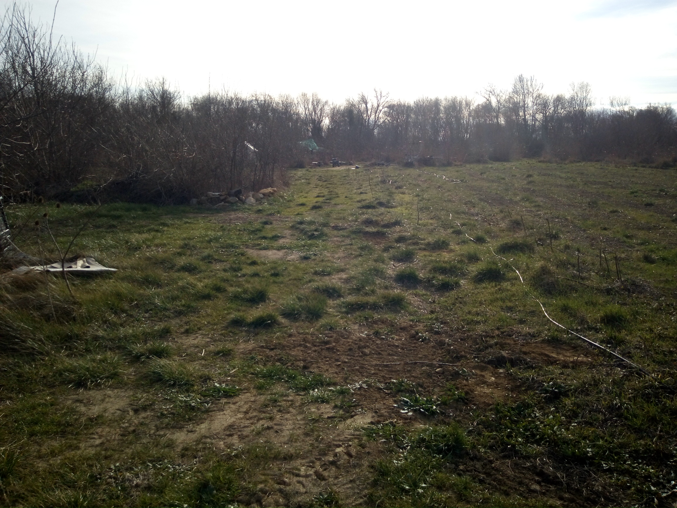 À gauche, la zone de traitement de tout ce qui est matières organiques, au milieu le bouquet d'arbre bien denses en question, à droite le petit jardin. Tout le fond, c'est le début du bois, vers l'Est, séparé du reste par un petit fossé bordé d'arbrisseaux, et un chemin bien enherbé. Beaucoup d'oiseaux, que je n'ai pas remarqué dans le bois, s'installent là. Mais pas les grives donc. Pas de mangeurs d'escargots.