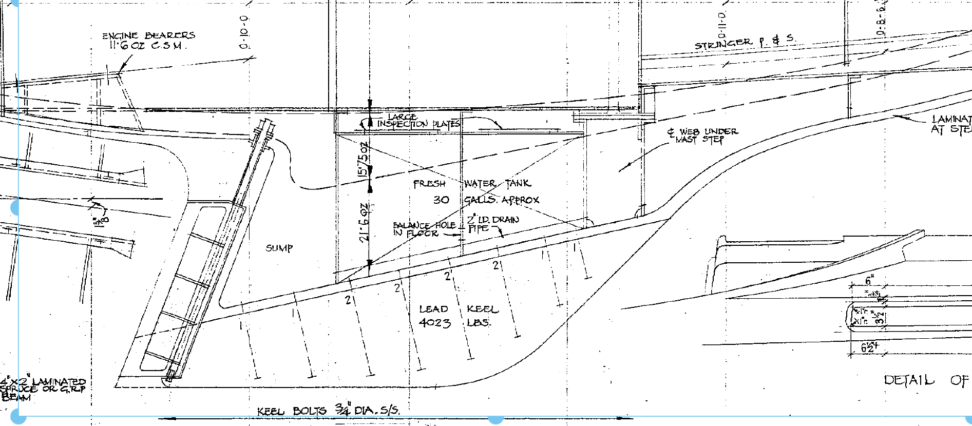 Grace à David, j'ai des plans détaillés. L'intérêt est d'avoir un maximum d'information sur les couches de résine de la coque, depuis la quille jusqu'au pont, en particulier le galbord.